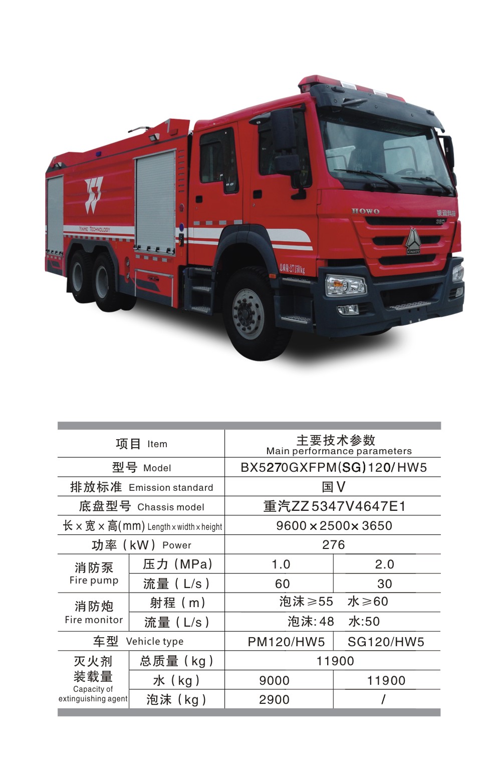 BX5270GXFPM(SG)120/HW5 水罐泡沫消防車
